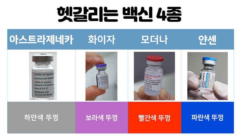 백신을 공급하는 회사들은 각자 자신의 백신의 뚜껑에 색깔을 달리하여 구분짓게 하고 있습니다.