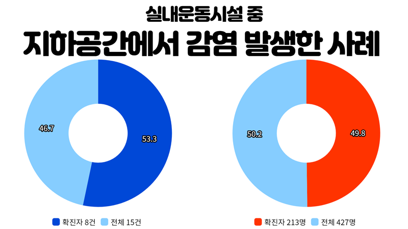 실내운동시설 중 지하공간에서 감염이 발생한 사례는 아래의 표에서 보시는 것과 같지만 신기한 사실은 지하공간이지만 지하철에서이 감염 사례는 한 차례도 없다는 것입니다.